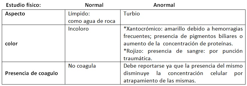 Estudio químico: al ser un ultra filtrado del plasma los valores son parecidos al sérico