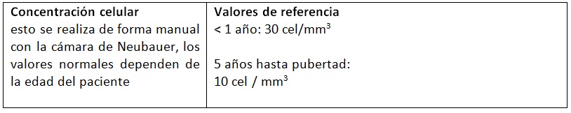 Glicemia: (glicemia sérica / glicemia Liquido): diferencia debe ser 10 mg /dL en 1 hora