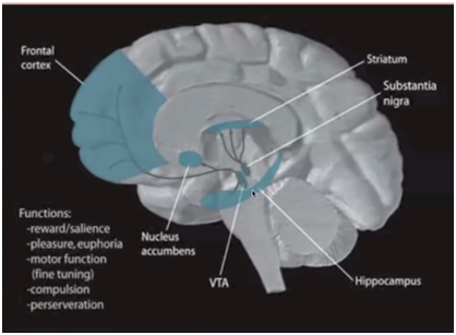 La información que llega al gyrus fusiforme se conecta con el sistema de recompensa, un sistema especializado compuesto por el área tegmental ventral (Una estructura dopaminérgica ) que proyecta sus axones hacia el núcleo accumbens, la amígdala, el hipocampo y la corteza pre frontal.