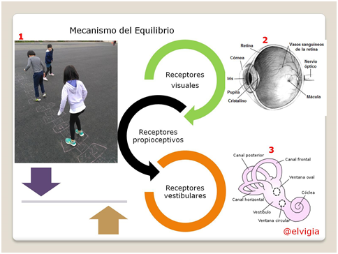 Las vías receptoras van a estar situadas en los ojos, los músculos, tendones, articulaciones y en el sistema vestibular que se encuentra en el oído interno. Cada uno de ellos tiene una función determinada: