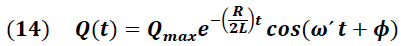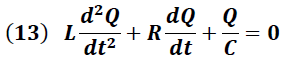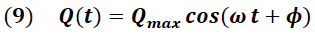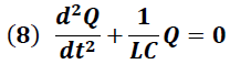 La ecuación diferencial dada por la expresión (8), es representativa del movimiento oscilatorio que experimenta la carga eléctrica en el circuito y tiene como solución la siguiente expresión: