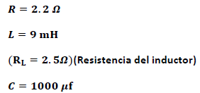 En la siguiente imagen se muestra un circuito R-L-C en serie energizado, cuyos parámetros conducen a una oscilación sub-amortiguada.