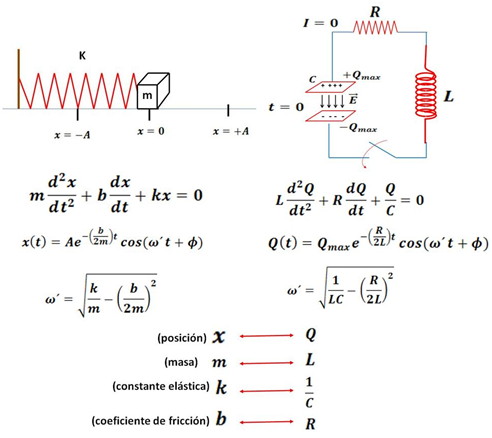Figura 5. Analogía entre los sistemas oscilantes mecánicos y eléctricos.