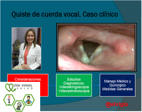 La doctora @elvigia nos presenta un interesante caso clínico donde habla una de las patologías causantes de disfunción de la voz, ronquera o disfonía. Una enfermedad que si no se trata a su debido tiempo podría ocasionar alteraciones tan serias como nódulos, pólipos, hematomas y hasta cáncer. Antes de explicar el caso clínico nos explica detalladamente la anatomía de las cuerdas vocales para una fácil comprensión a la hora de explicar la patología. El diagnóstico es muy importante y el paciente presenta serios problemas en sus cuerdas vocales que, a través de una video laringoscopia, examen inicial en todo paciente con disfonía o alteraciones de la voz, la doctora hace énfasis en la enfermedad. Posteriormente se realiza la valoración del paciente y su tratamiento, pero luego de una cirugía obtenga el diagnóstico definitivo exitoso. Si deseas conocer a profundidad sobre este tema puedes visitar su perfil y leer este fantástico post. Por lo cual la hace acreedora del 2 lugar del podio STEM-Espanol.