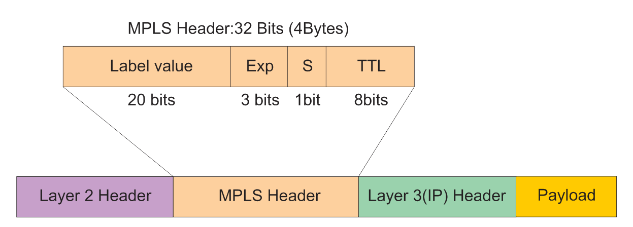 MPLS header is placed between layer 2 and layer 3 of the OSI model allowing for a faster WAN switching speed. Image source Wikimedia. Creative Commons Attribution-Share Alike 4.0 International license.