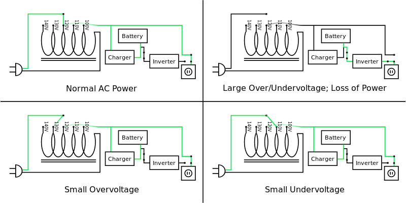 Schematic representation of a line interactive UPS Wikimedia commons CCASA 3.0