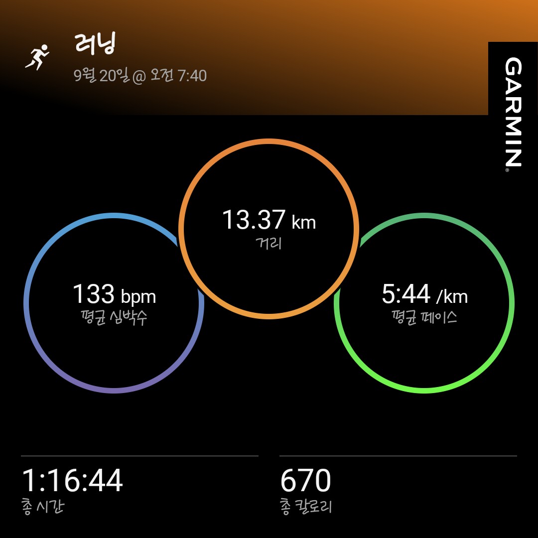 오늘 아침은 긴팔 입고 달렸는데 아직은 더운 기운이 남아있어서 그런지 달린지 1키로만에 후회했습니다.