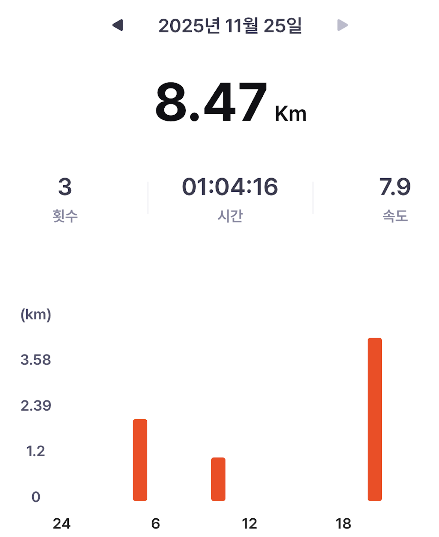 [M2E] 2025.11.25화 - 8.47km 오늘의 운동 완료 (목표 4km)