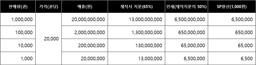 제작비와 부대비용 등을 감안하지 않은 단순 계산으로 <개새끼소년>이 밀리언셀러가 되어 100만권이 나가면 작가는 인세로 65억원 정도를 받게 됩니다. (도서출판 춘자는 작가와 비용을 제외하고 5:5로 수익을 쉐어 하고 있습니다.) 이걸 모두 스파업을 하면 650만 SP가 됩니다. (시세 1,000원 기준) 사는 시점에 따라 규모는 달라지겠지만 650만 SP로 보팅서비스를 받아 그것을 저 5개의 계정에 나누면 그것이 이 NFT 프로젝트의 또 다른, 스팀잇스러운 혜택이 될 수 있을 겁니다. 물론 얼마나 판매될지, 얼마나 걸릴지는 아무도 모릅니다.