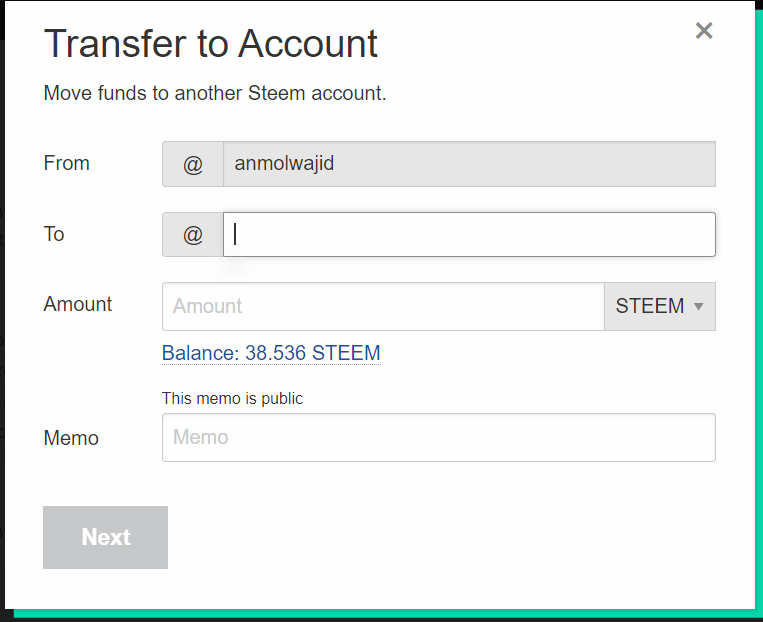 Click on the transfer button and a form will pop up