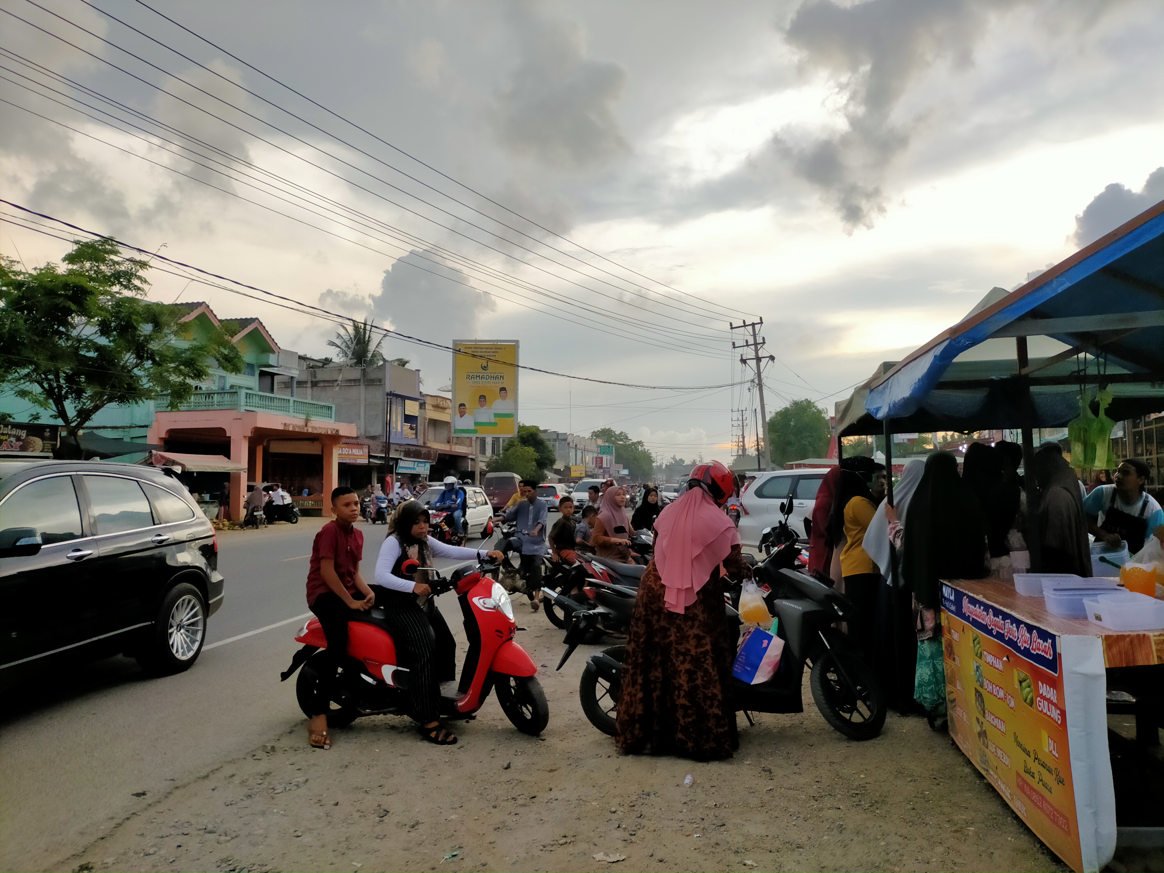 Hari ini adalah hari terakhir Ramadhan 1442 H. Keadaan pasar yang biasanya ramai setiap sore menjadi berkurang. Mungkin saja mereka disibukkah dengan persiapan menyambut lebara idul Fitri.