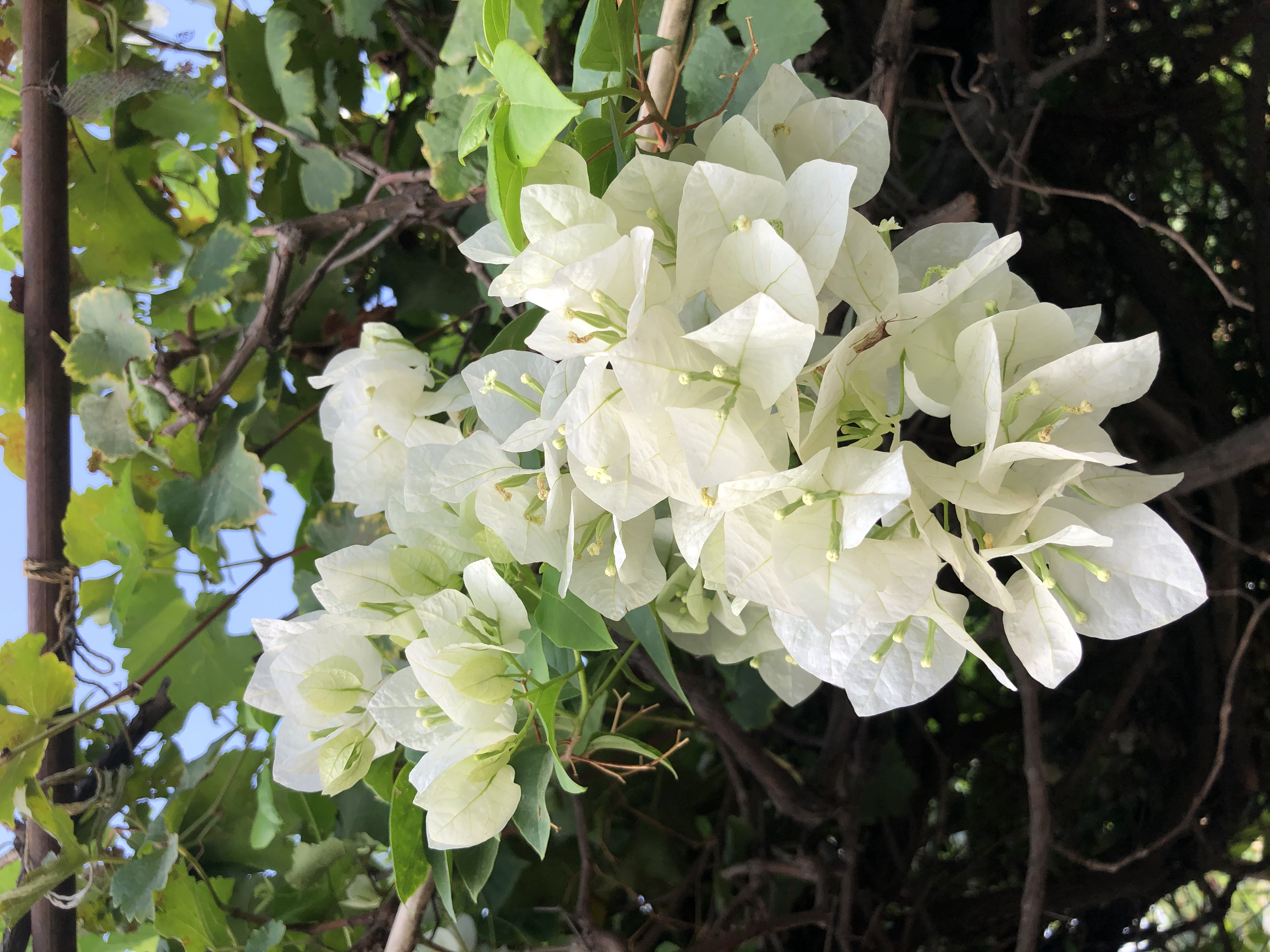 The beautiful flowers are generally small, white, & inconspicuous, highlighted by several brightly cool colored modified leaves called bracts.