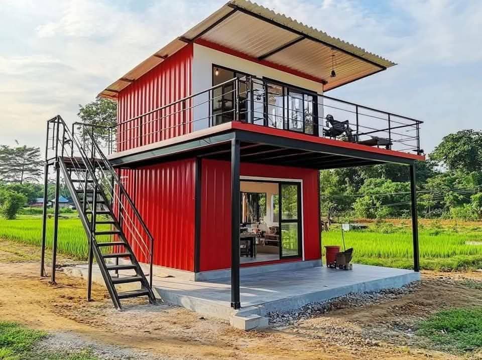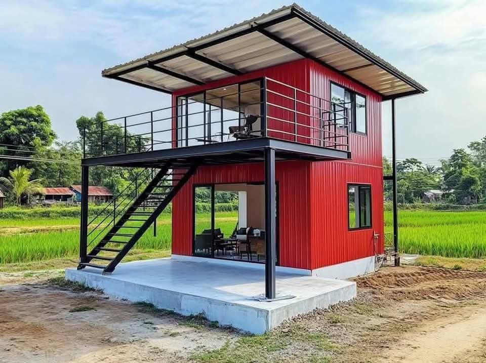 The house itself was a marvel of design. The walls were clad in red paint, giving it a bold and vibrant look. I later learned that the walls were insulated with galvanized steel, making it incredibly energy-efficient. The floor was concrete, sturdy and easy to clean, while the frame was constructed from tubular steel, painted black for a sleek contrast.