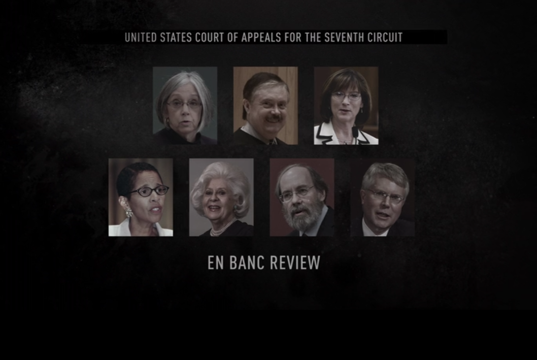 Drizin and Nirider continue to prepare to again, this time to present to 7 judges instead of 3. This is the last step before the supreme court. They present. Williams and Rovner maintain their skepticism of the "confession". Wood joins them in basically laughing at State's counsel. Hamilton and Sykes are obvious dunces along with Kanne. Hamilton is worried about shell casing in the garage for some bewildering reason. Sykes claims Nirider is trying to create new law for some reason, completely missing the fact that filthy interrogators turned a basically retarded boy's head around for a bizarre statement that has no connection to evidence. The only one we aren't sure about is what Easterbrook is thinking.