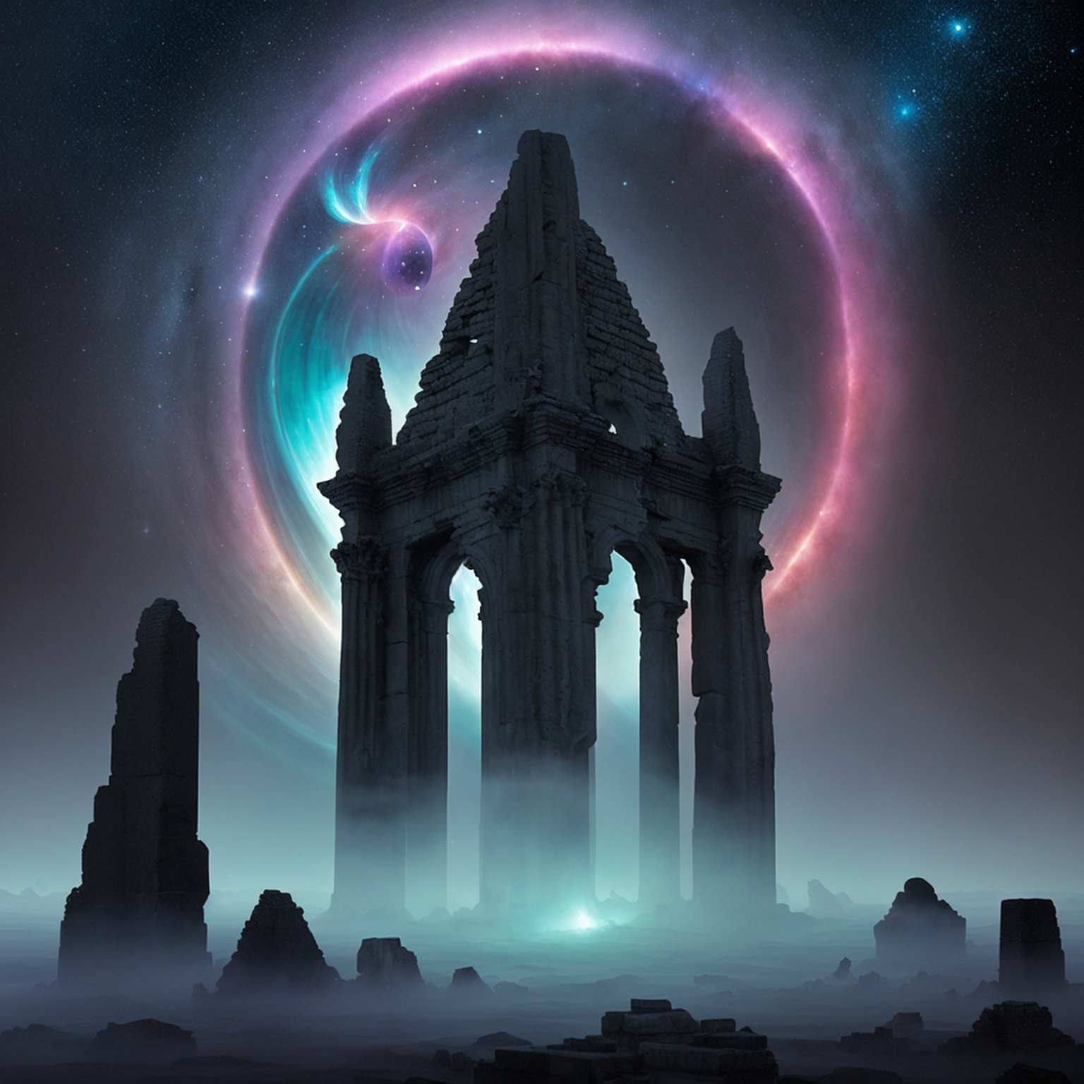 As the Stellar Horizon pressed onward, the nebula seemed to come alive with spectral apparitions and shimmering mirages. Ancient ruins emerged from the swirling mist, their crumbling spires a testament to the passage of time. It was as if the very fabric of reality had been twisted and reshaped by forces beyond comprehension.