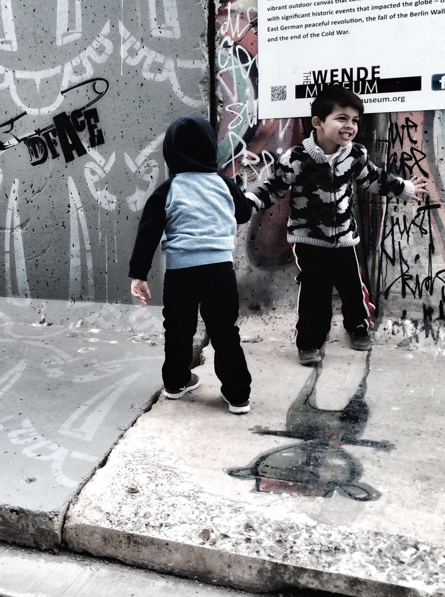 The third photo I’m especially pleased with. Not just for the timing. That’s a permanent art installation of eight slabs from the Berlin Wall, painted by various artists, which is here in L.A.Its such a powerful exhibit, located outside the Wendy Museum. I love that it’s interactive. People can touch it, walk on it, lean against it. And children can play there...not knowing the terror and oppression it once represented.