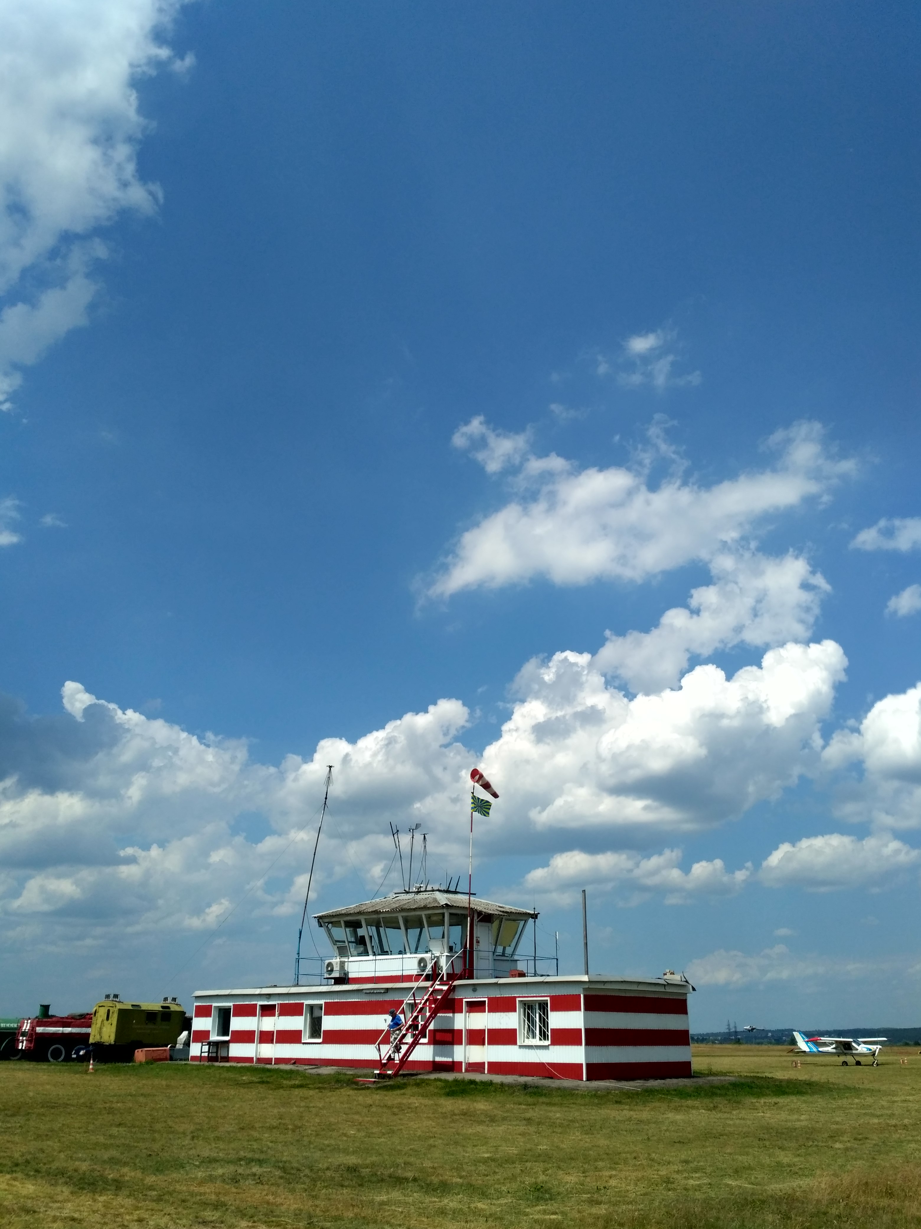 Once again, landing aircraft. Friends and relatives of parachutists are watching the take-off aircraft.
