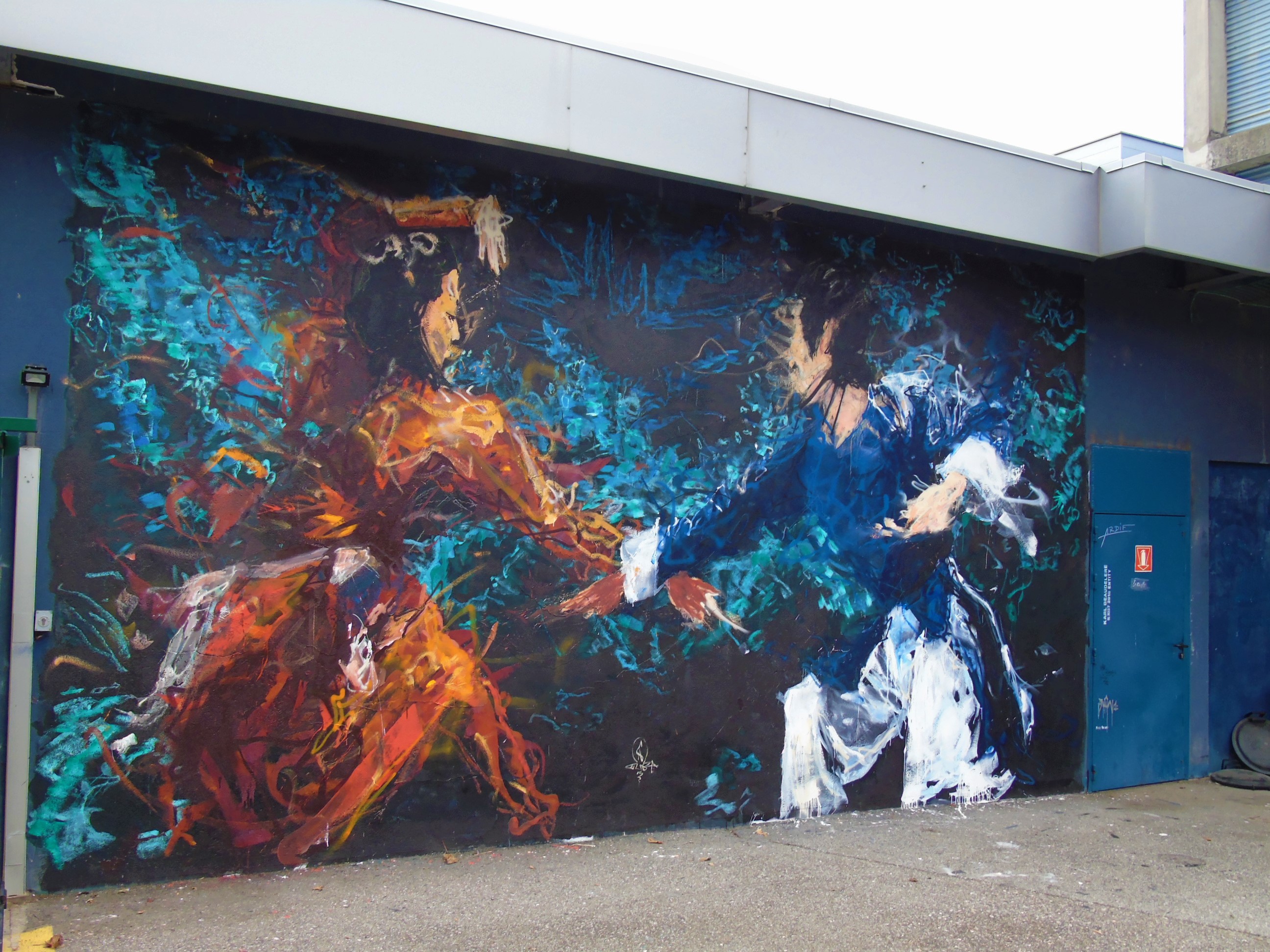 Un couple de danseurscurart38 (62)in #streetart • last month Salut à tous, un couple de danseurs sur lu mur d'un collège proche de chez moi. Peint avec un style abstrait mais on reconnait bien les deux personnages. Bonne journée. #art #photography #blog