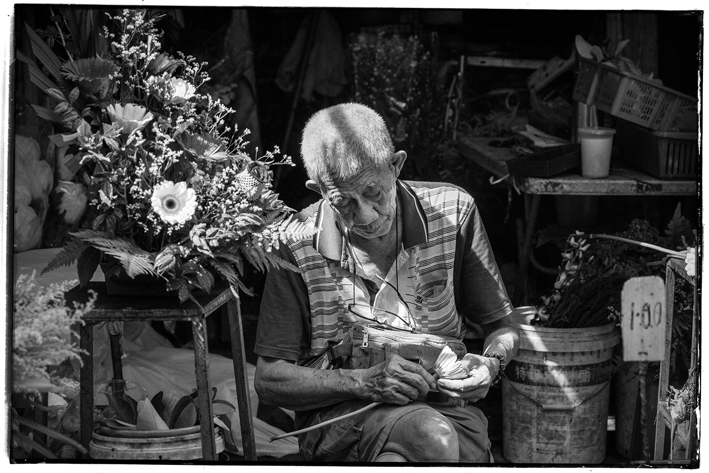 Similarly in this shot of the old guy selling flowers, the contrasty light really makes the shot for me. Some people say you should shoot early morning or late afternoon when the light is softer, which is generally true. But sometimes shooting in the middle of the day in harsh light can be effective too as it can add a bit of drama.