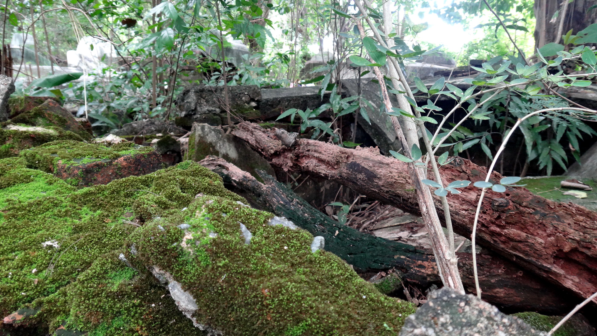 There are no pathways well there was but they are all broken up and overgrowth covering them so you more a less just make and find your our way though a machete would of come in handy but i managed to make my opening and not sink or fall into any hidden holes that might have been covered with overgrowth it was all fun.