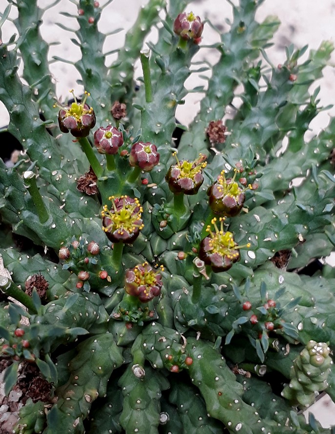 Finally, Euphorbia gorgonis is flowering madly, and making seed pods.
