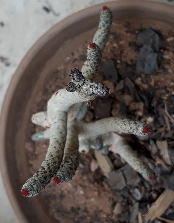 In a Dune moment, Tylecodon bucholzianus is waking up for winter now that the days are shortening and the weather cooling down