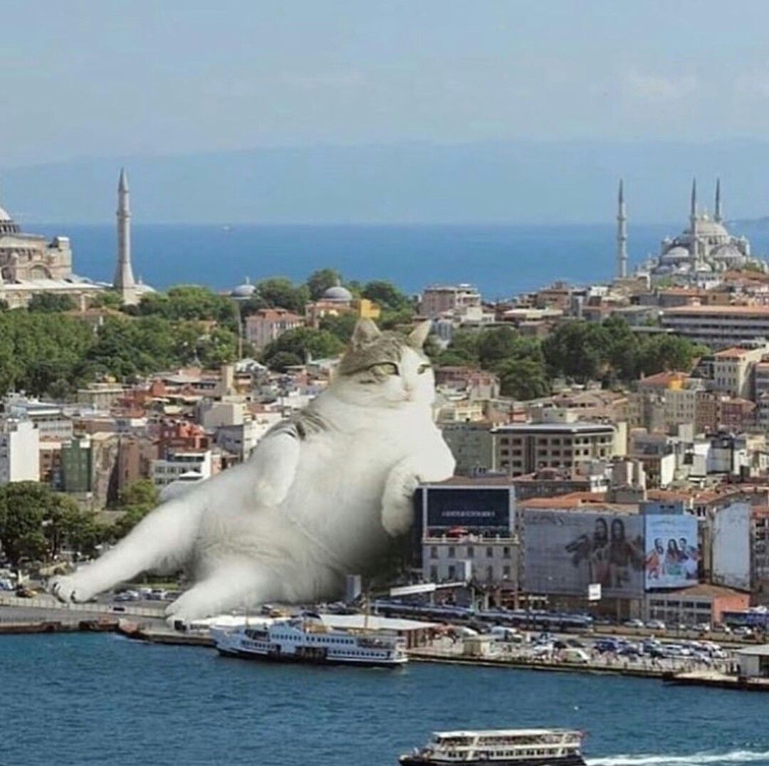 Imagine if this cat rages, all the city can be destroyed, but this time this sweet cat again relaxed and spent the afternoon with the beauty of the city.
