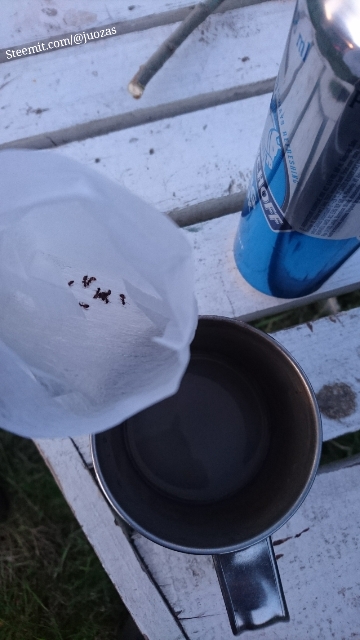 Once the meat is prepared and roasting on the fire. I pick up my drink, which was gin/tonic, to find out that it's completely covered with sugar ants. I only had one sip before the invasion and there were a lot of gin/tonic left, so I couldn't rationalize throwing it all away.