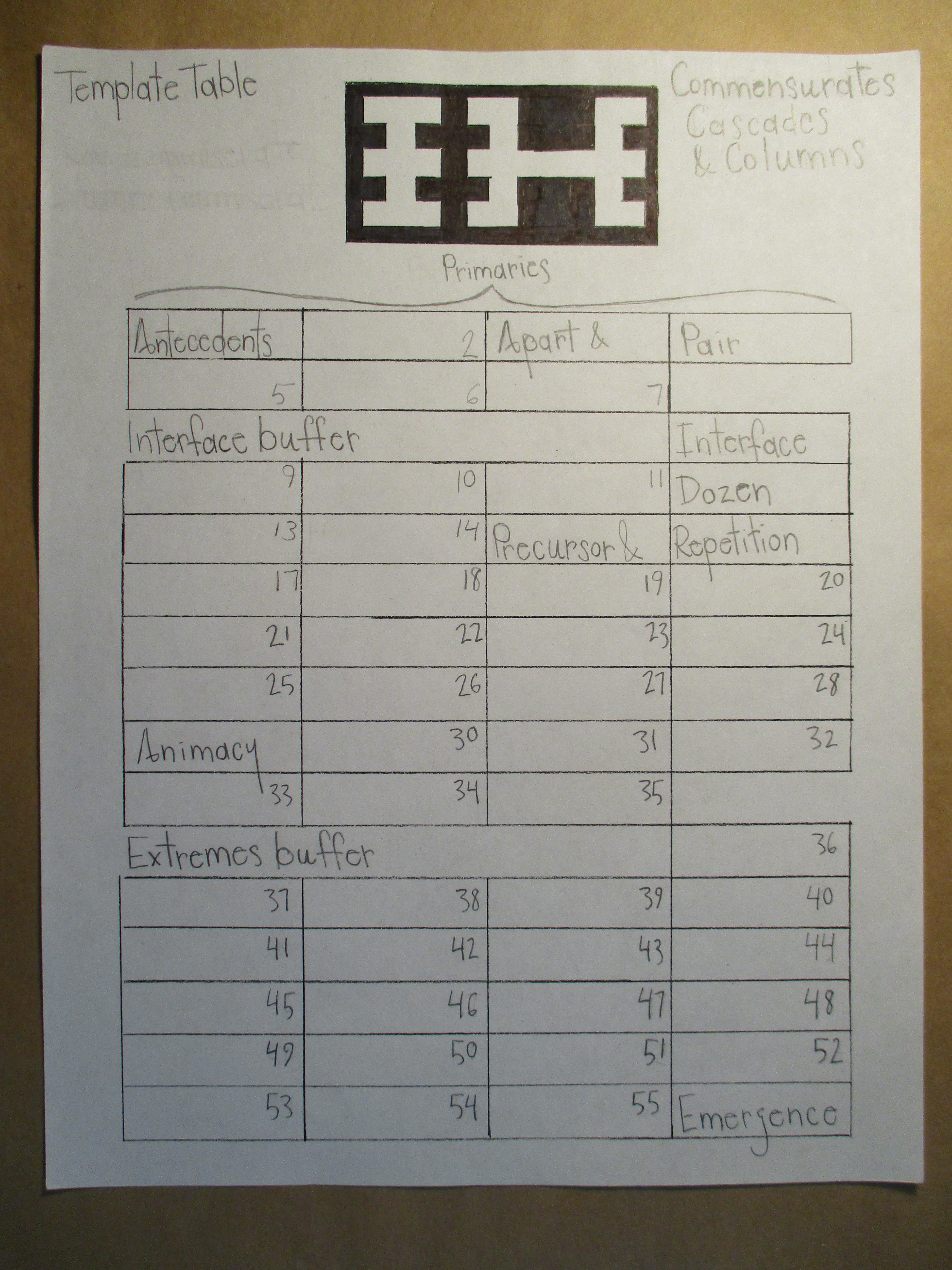 Commensurate cells that synchronize, overlap the same template cell on a different page or category. Aligning commensurates appear in the same column, and are more applicable than others in the same column. synchronizing and aligning commensurate cells are uncanny indicators that provide guidance as to how the template lexicon should be arranged. This process is more work than simply filling-in-the-blanks but synchronizing and aligning is more gratifying. It is as if the language wants this to happen!