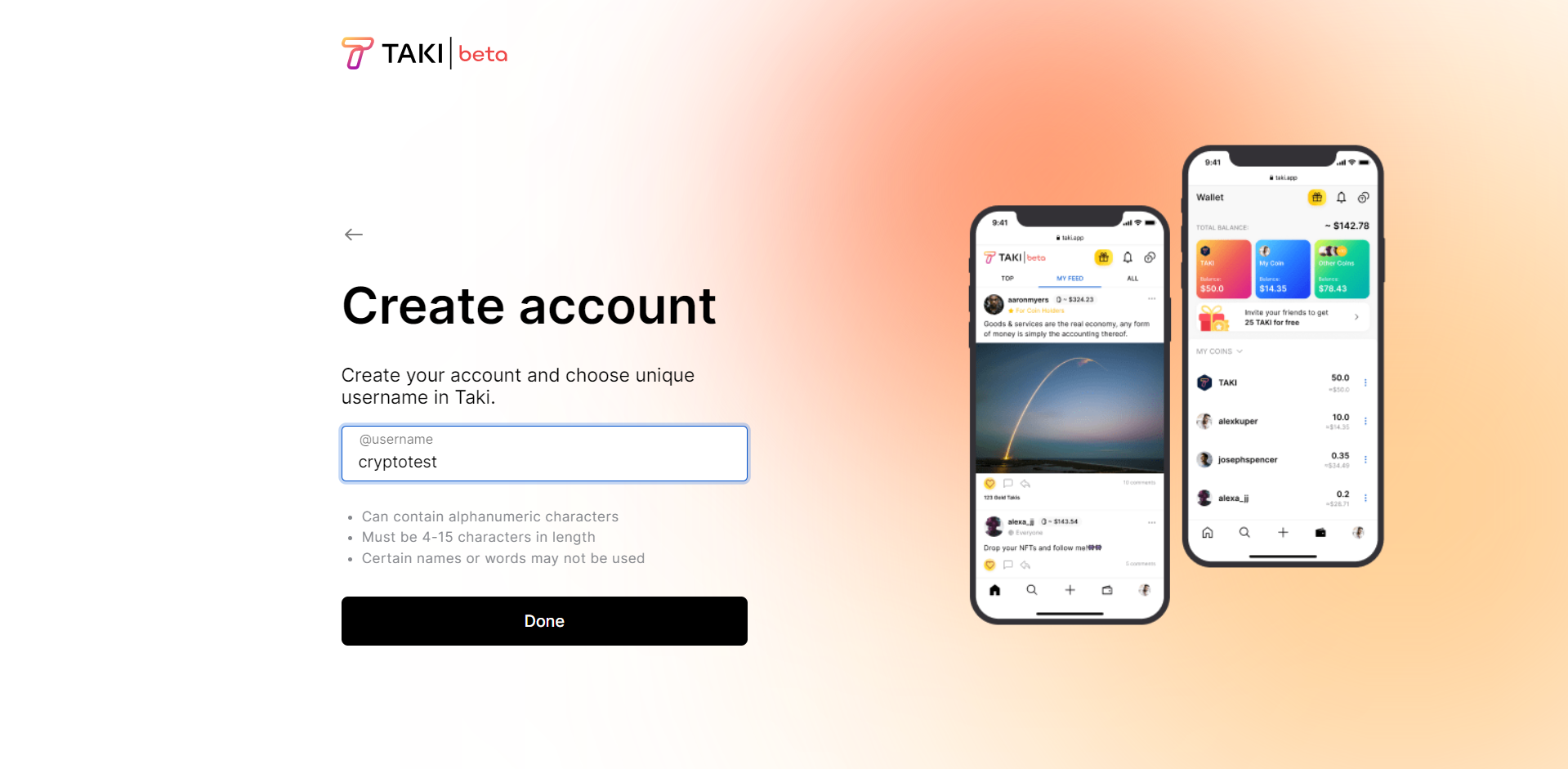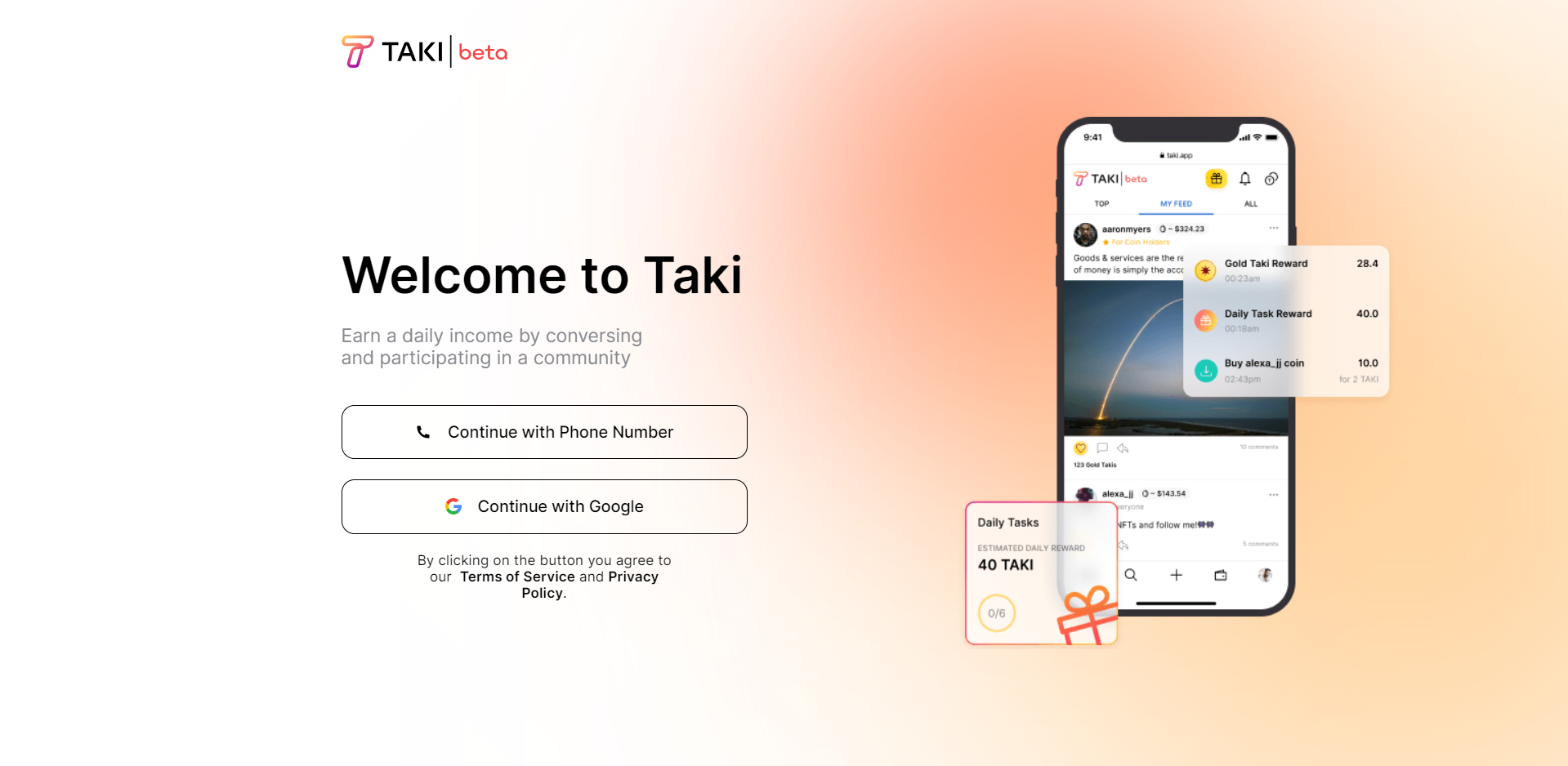 Taki adalah jejaring sosial bertenaga token di mana setiap orang dapat memiliki, mengelola, dan mendapatkan penghasilan sendiri dengan berpartisipasi dalam percakapan komunitas, Miliki jaringan sosial bertenaga token Anda