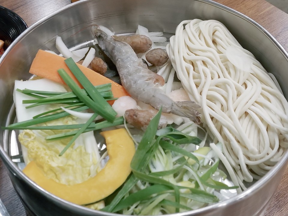 큰 새우,미더덕,단호박,생면칼국수등등...을 먹고나니...