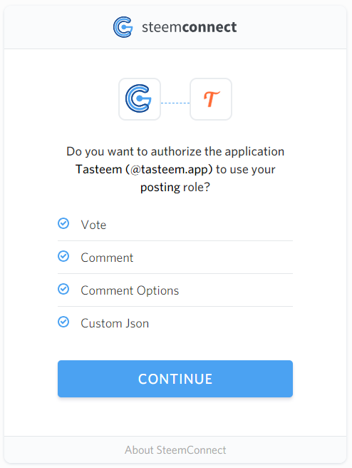 2.ログイン:Tasteemはキーを保存しない安全なSteem Connectを利用しています。
