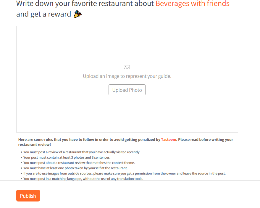 There is ongoing guide for getting special rewards. Beverages with friends is the topic that you can share some photos and can earn from the restaurant or coffee shop you are drinking something. It is very easy to use and it gives a joy to share what you eat, basically if you eat something cheap and share it on tasteem it means that you are eating for free because tasteem pays for you with the gotten rewards.