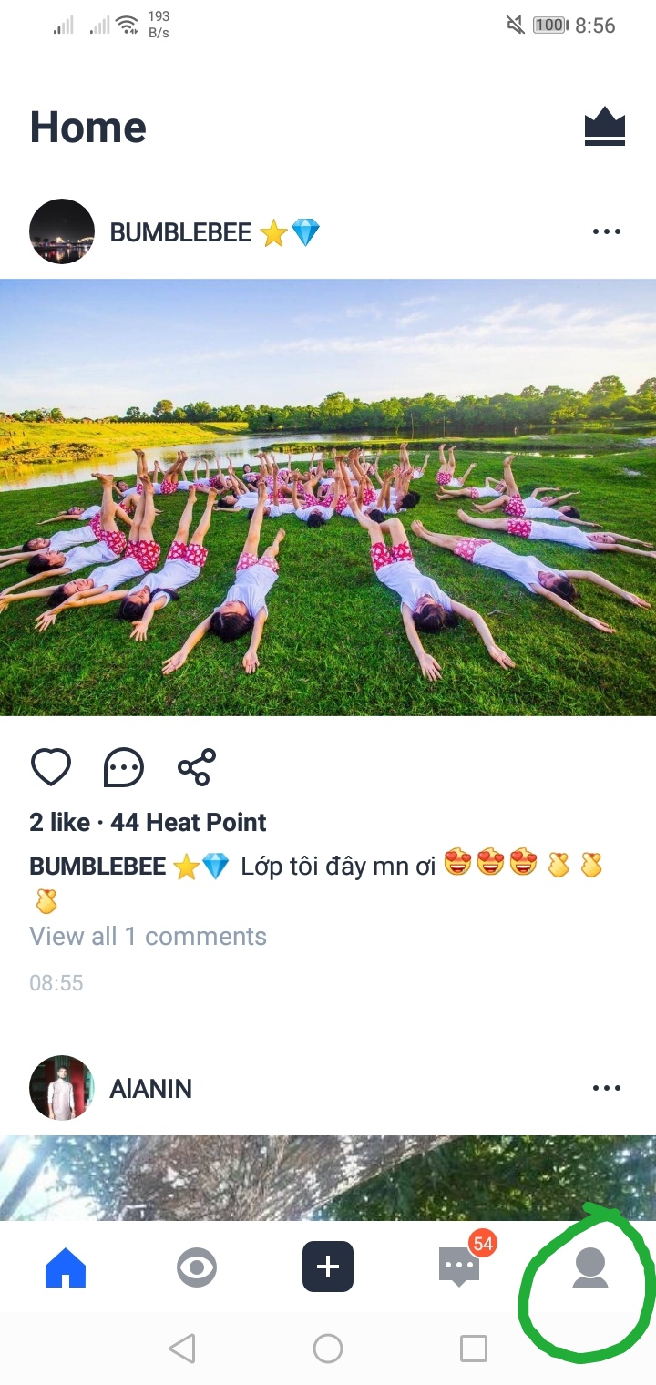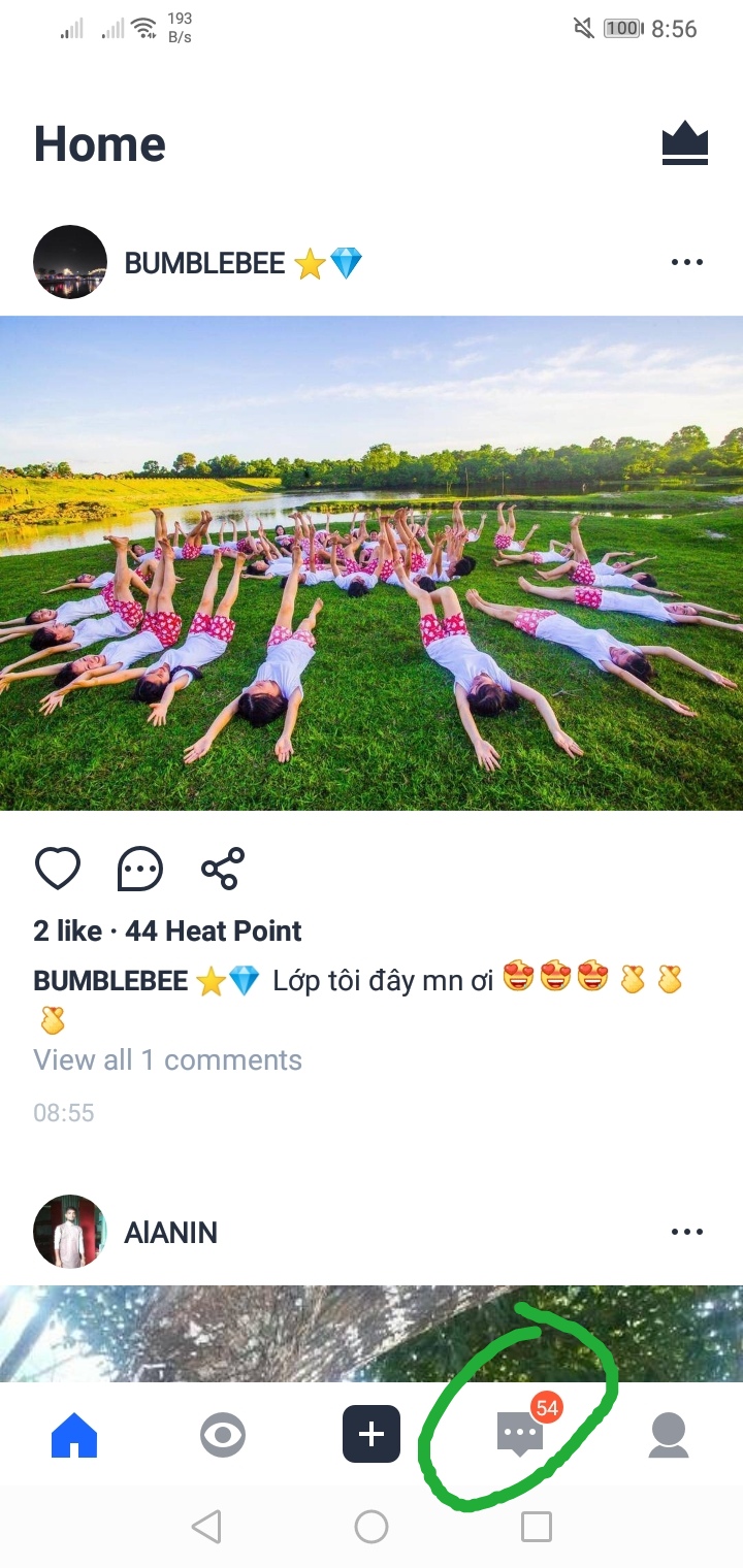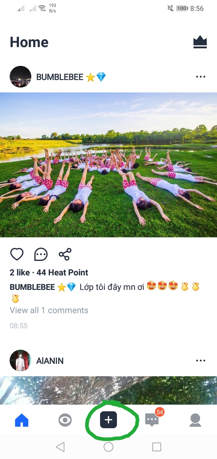 Using this plus button you can share your photos with your friends. Your photos will be shared with your followers. They can react your photos.