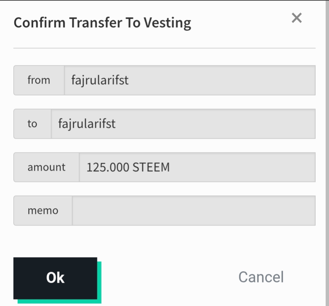 And for that I also need to confirm the Transfer to Vesting amount of 125 Steem