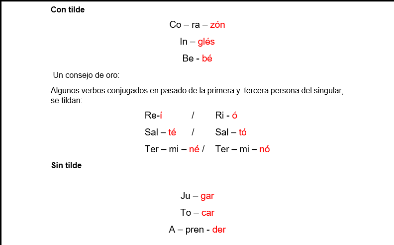 Vamos a ser capaces de diferenciar las silabas tonicas de las silabas atonas. Hacer enfasis en dichos temas nos ayudara a comprender mejor.