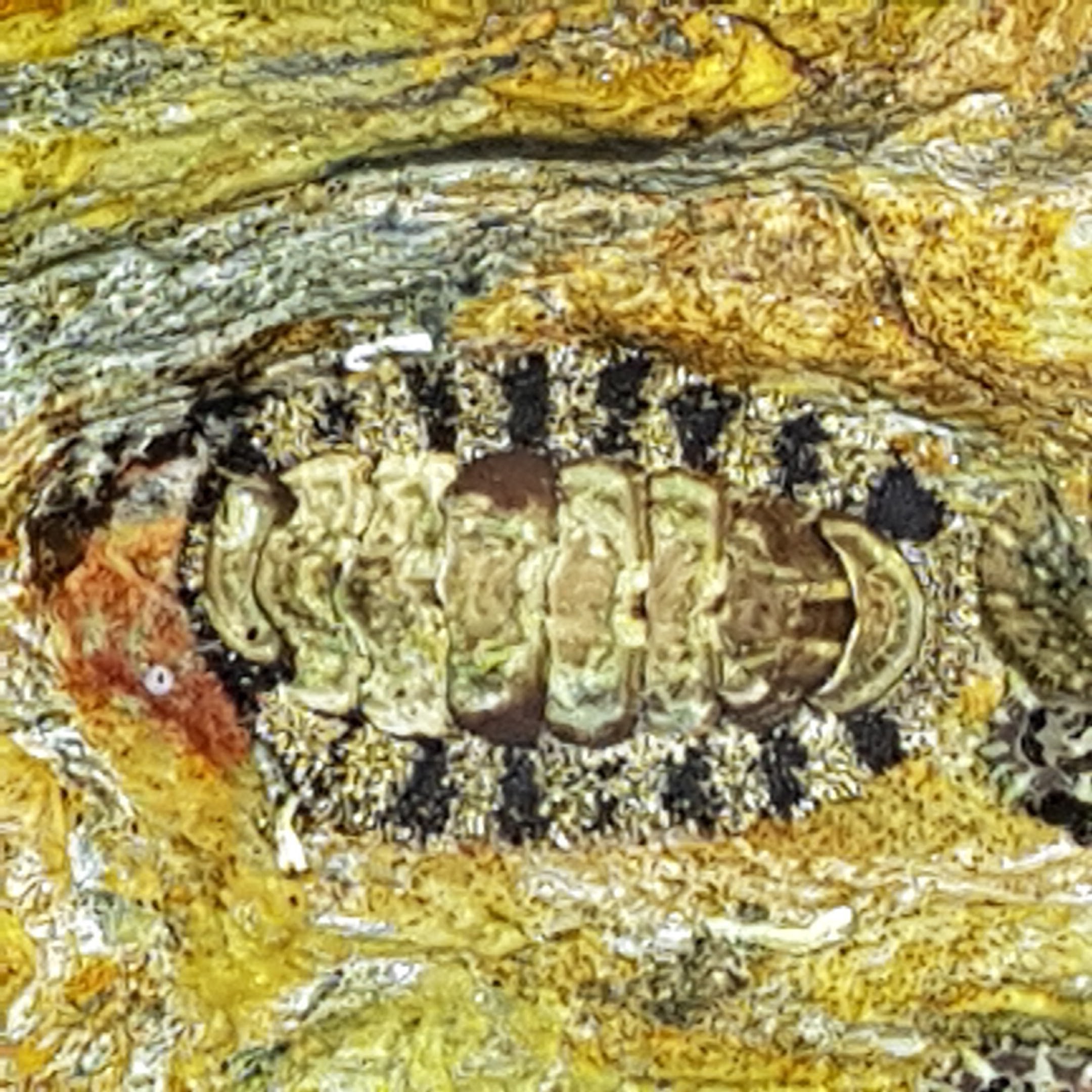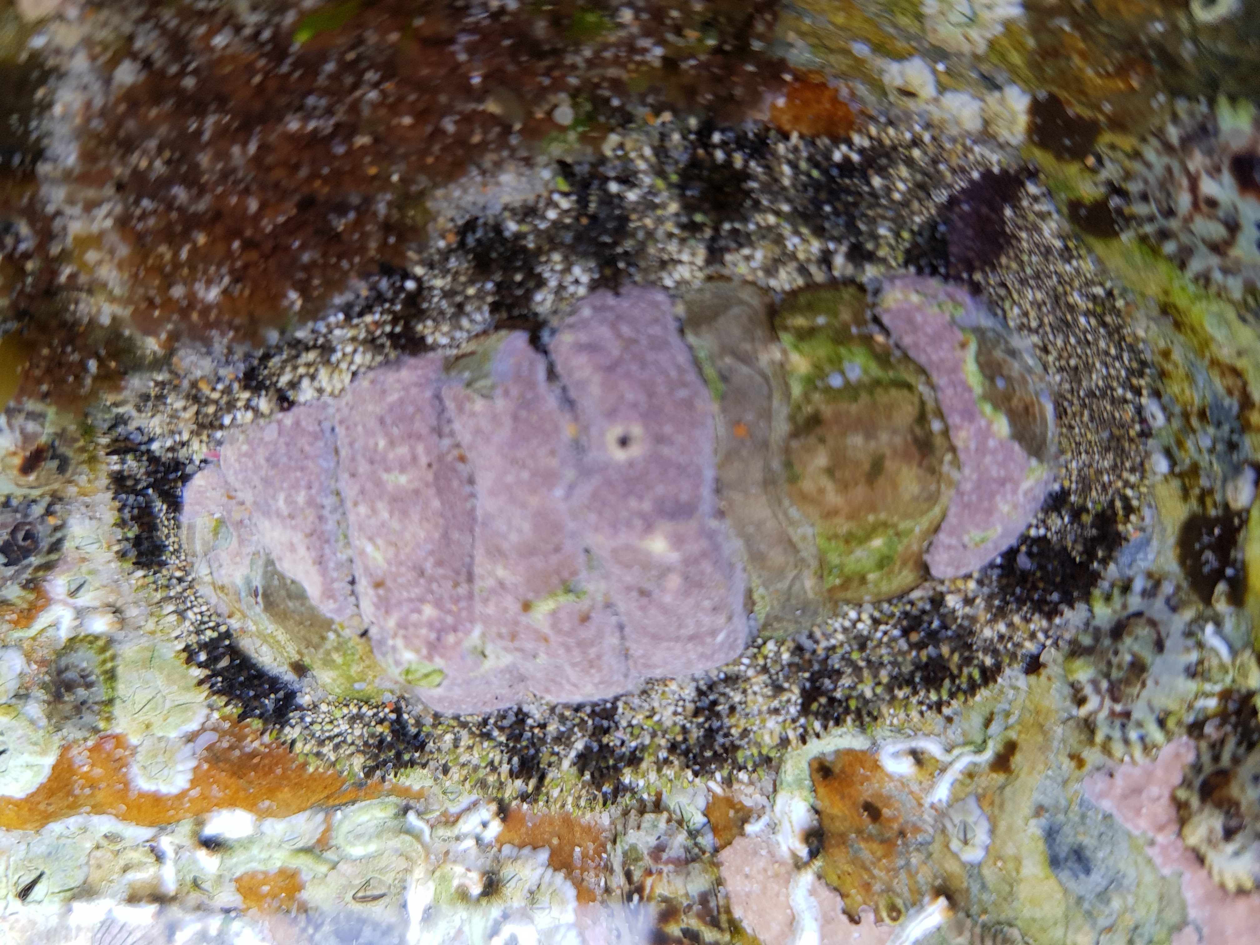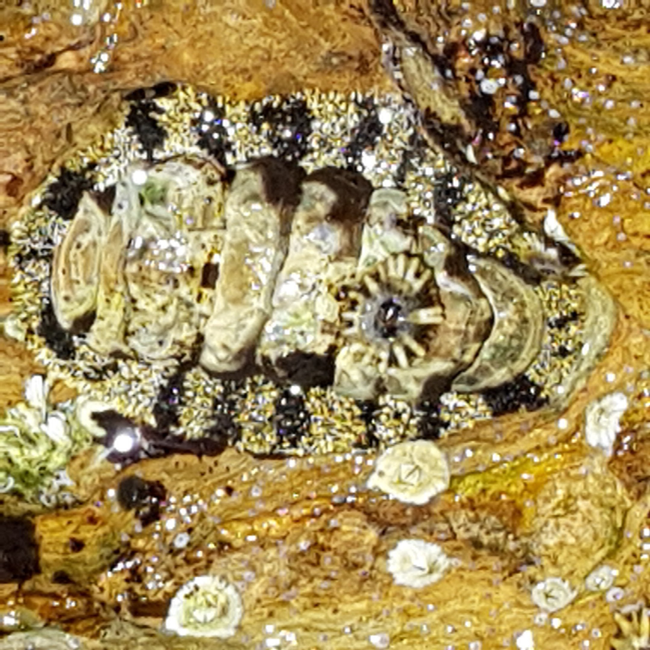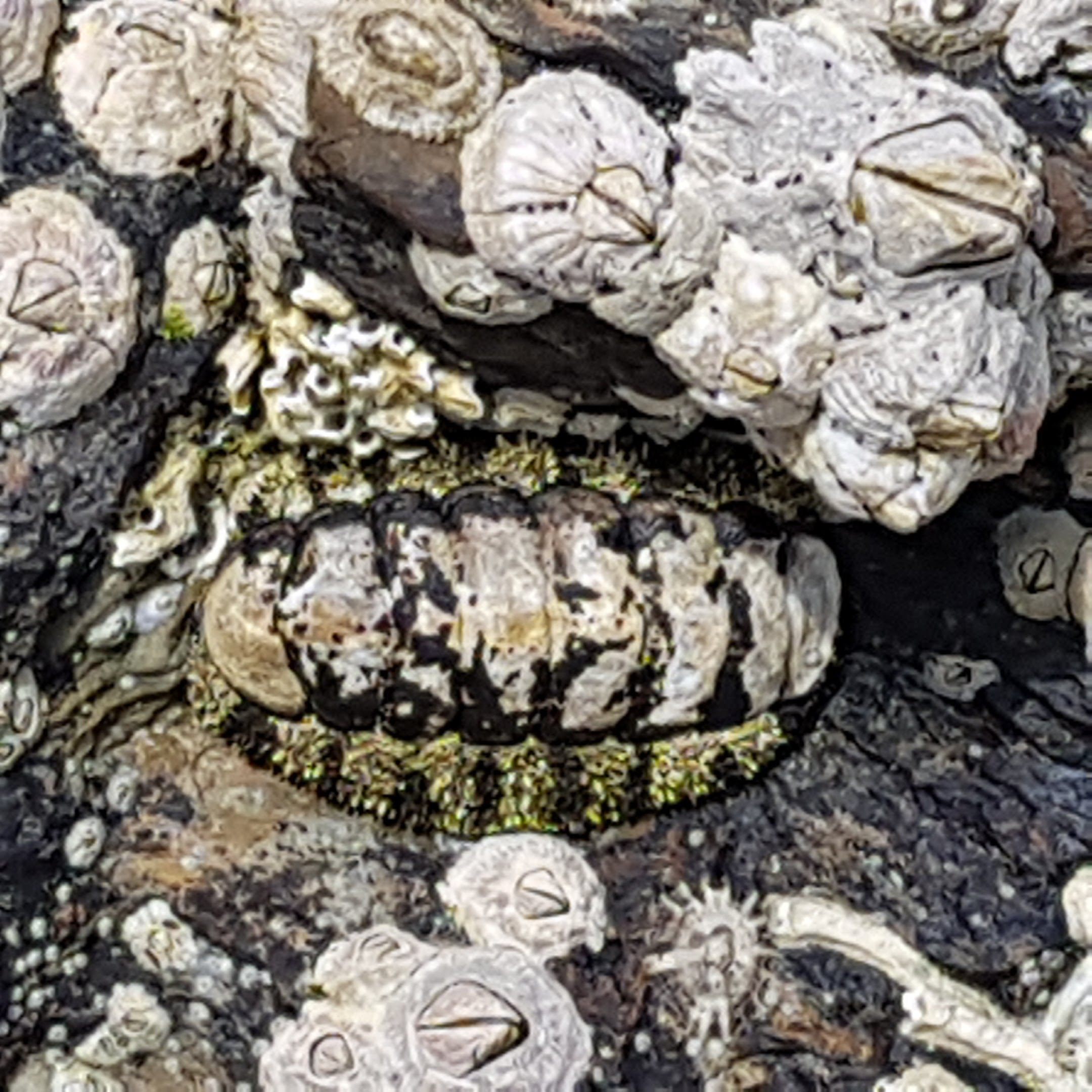 A chiton is a mollusk that lives in the intertidal zone of the ocean, part of it's daily life is submerged under water and the other part of the day is out of water as the tide goes out.