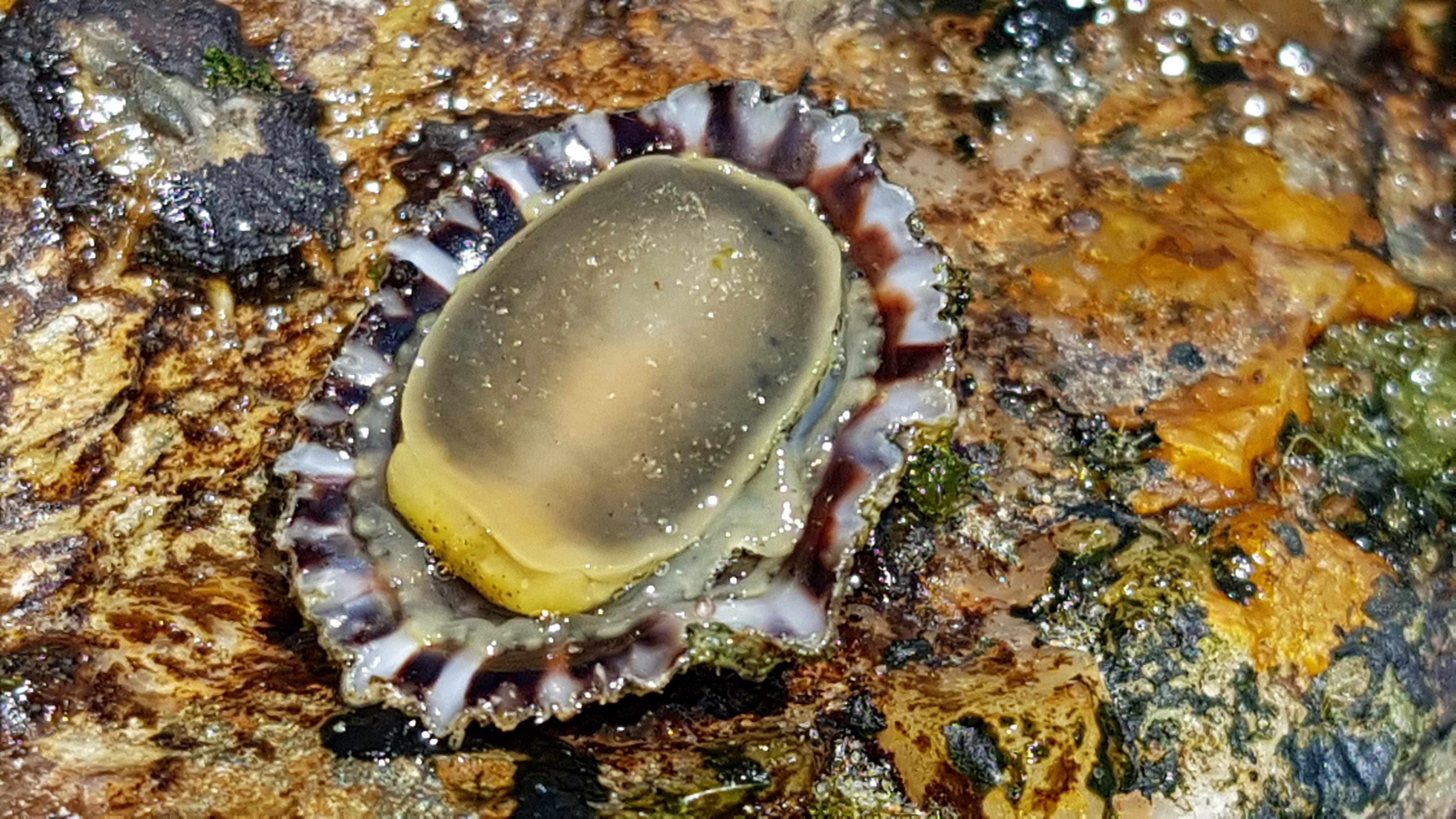 They are a slug in a shell that grips tightly to the rocks and at low tide they slowly move feeding on algae, and at high tide when there's predators they remain still.