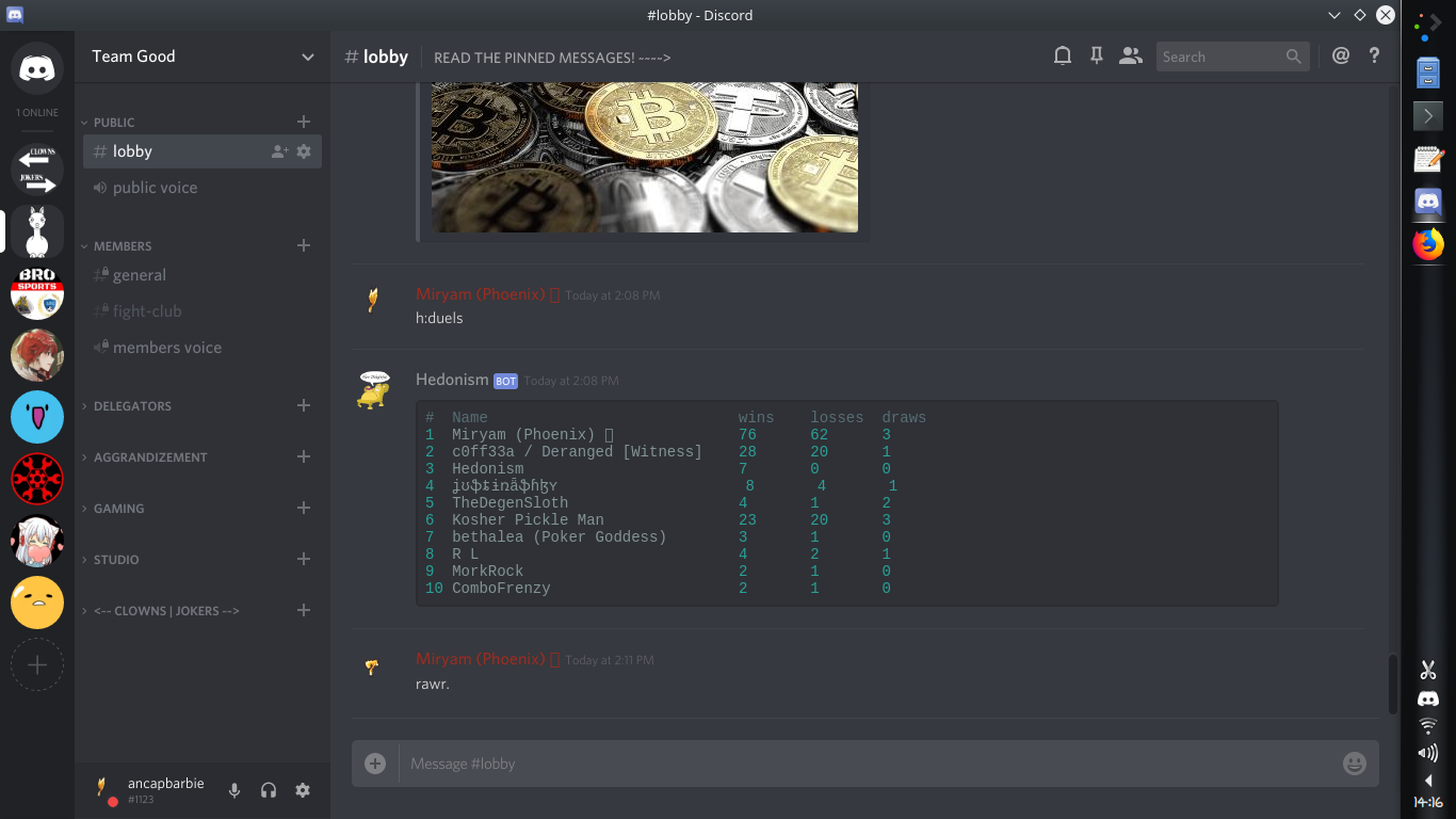 You forgot to mention that THE benefit of #TeamGood is FightClub every Friday with everybody's favourite Pirate @reverendrum taking the lead. Best fun that I have had in a long time, although the staying up till 5am to join in tends to make me entirely useless on a Saturday daytime.