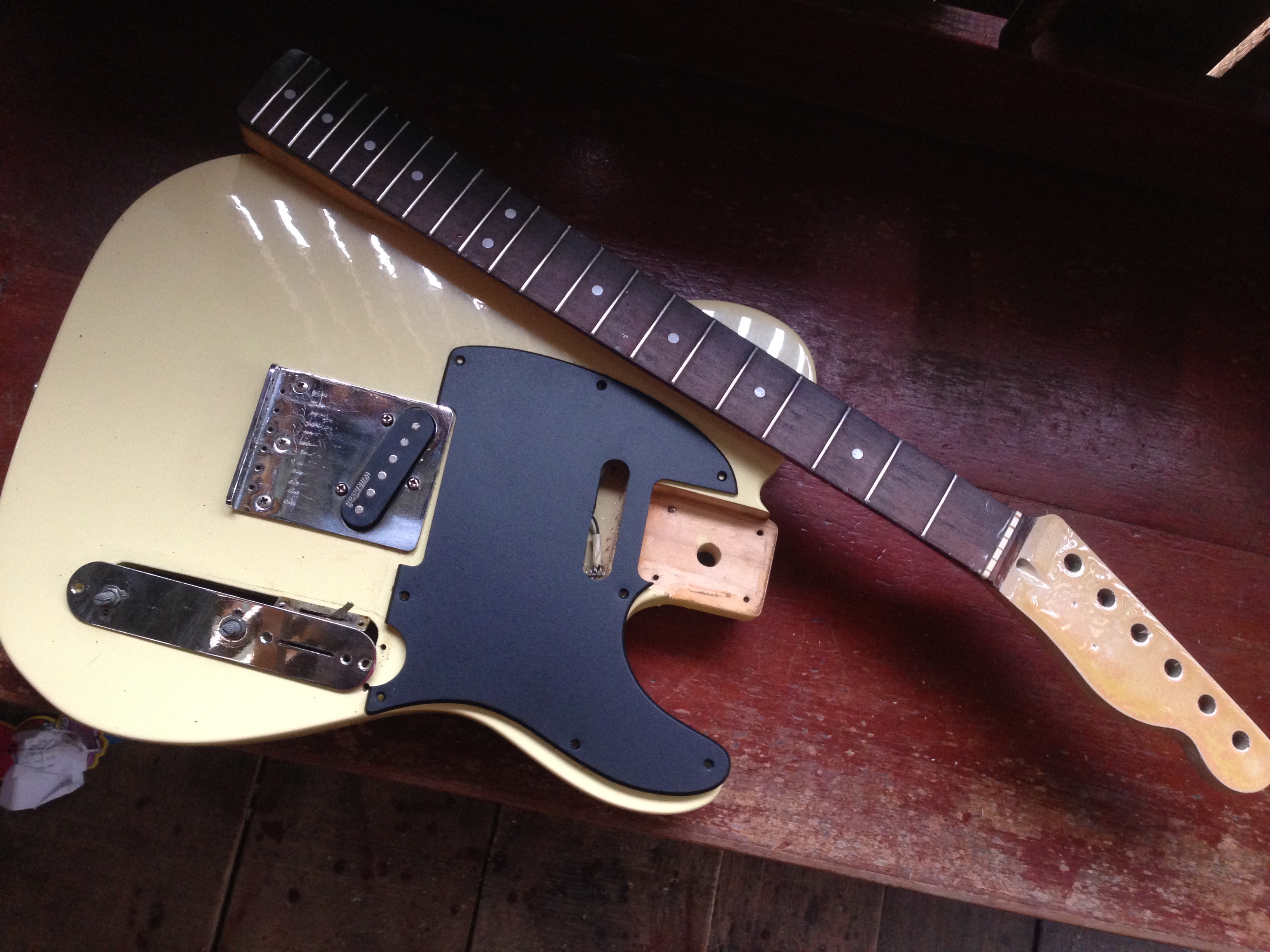 Pickguard pula asalnya putih tapi untuk mengabungkan kombinasi warna dengan kuning agaknya tonal Kuning dan hitam sebenarnya agak sinonim dengan Fender Telecaster Japan Series (Cij) crafted in Japan.