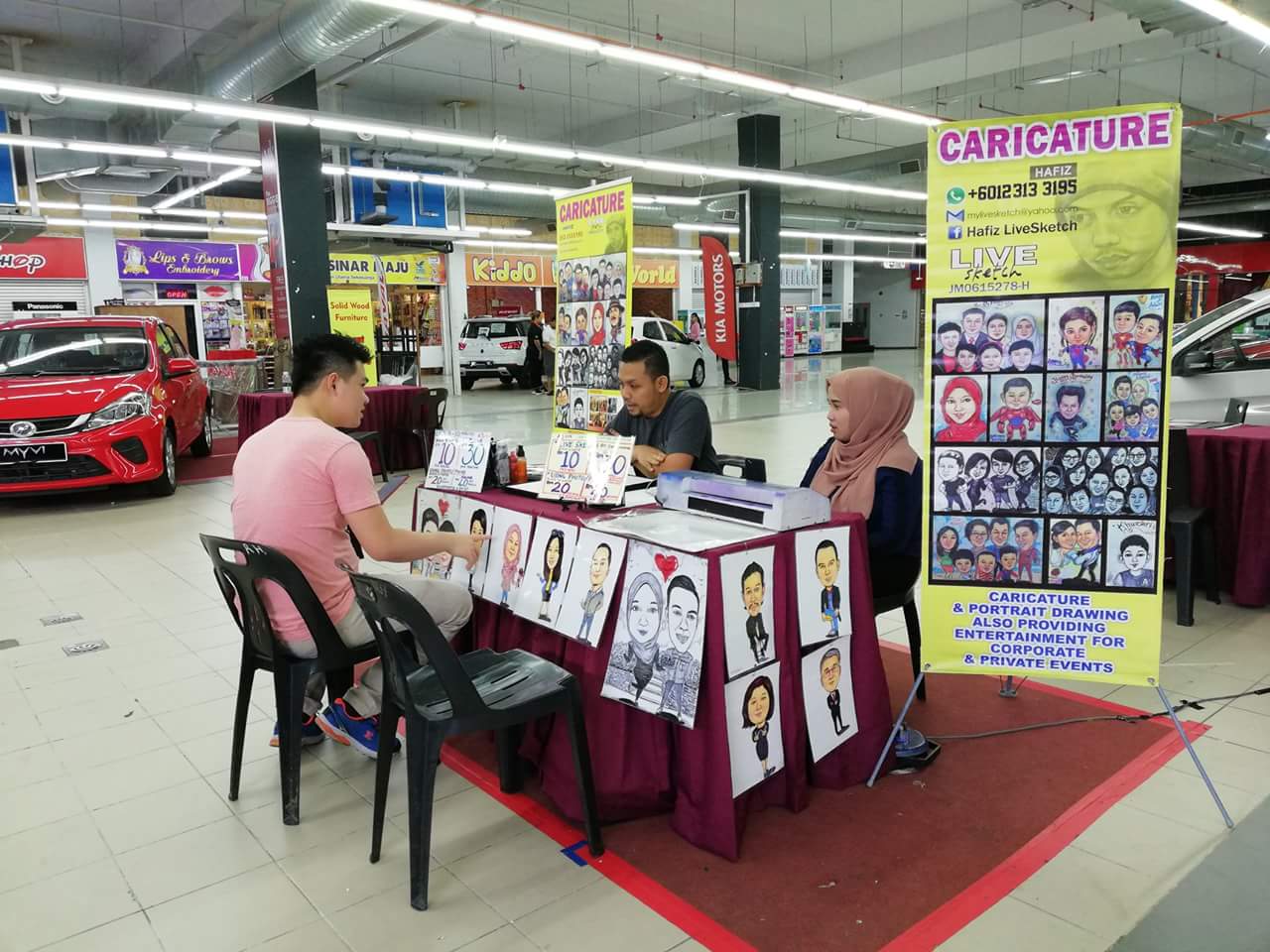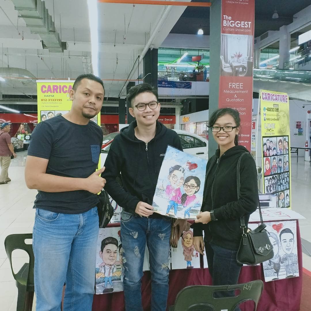 caricatures&portrait drawing booth promotionhafizlivesketch (40)in #teammalaysia • 8 years ago (edited)live caricature drawing promotion.@emart batu kawa, kuching, Sarawak thanks customers .![ #steem-cartoon #fineartnow #indonesia #drawing