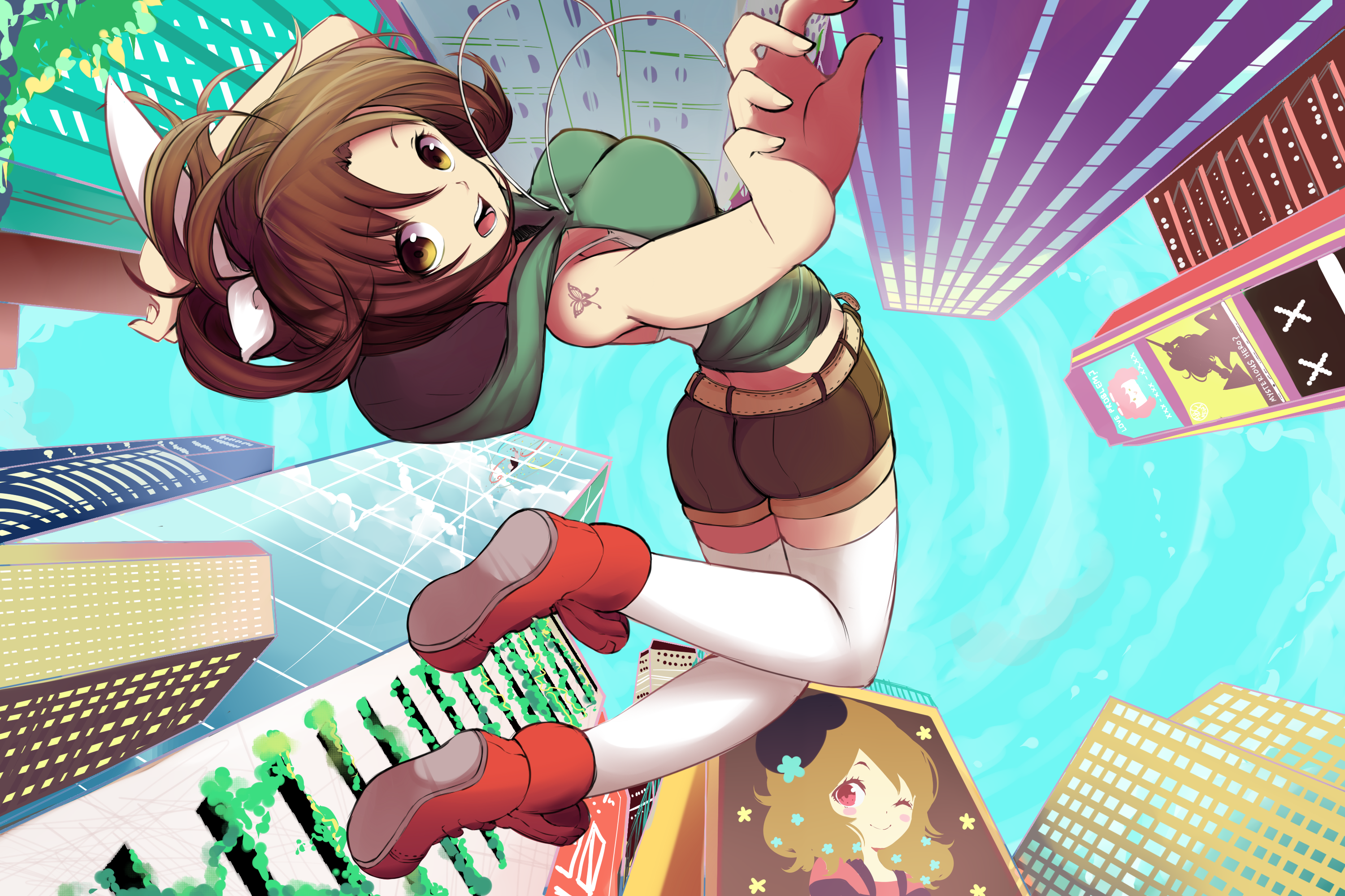 Aahhh I really like the dynamic pose and the colours in this picture! And also you worked on the background, drawing all those buildings so that's really awesome as well. No wonder this is one of your favourite artworks.