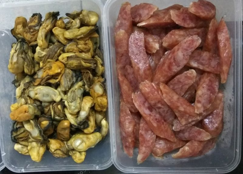 glutinous rice 糯米- soak for around 3 hours and fried with soy sauce and spices