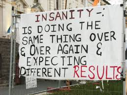 I may have said this before but a good definition of insanity is just continuing the same old way and hoping for a different radically different outcome.