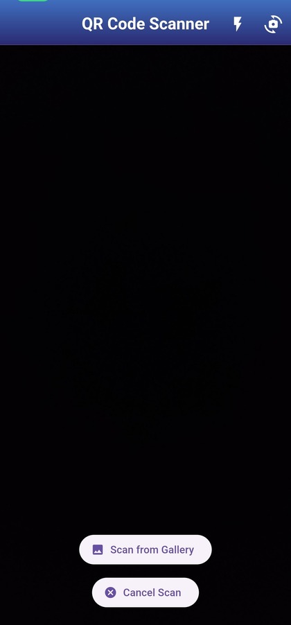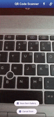At the bottom of this screen there are two buttons, one button is to select image from the gallery and scan QR code from that image. The other button is to cancel the QR code scanning if the user does not want to scan the code.