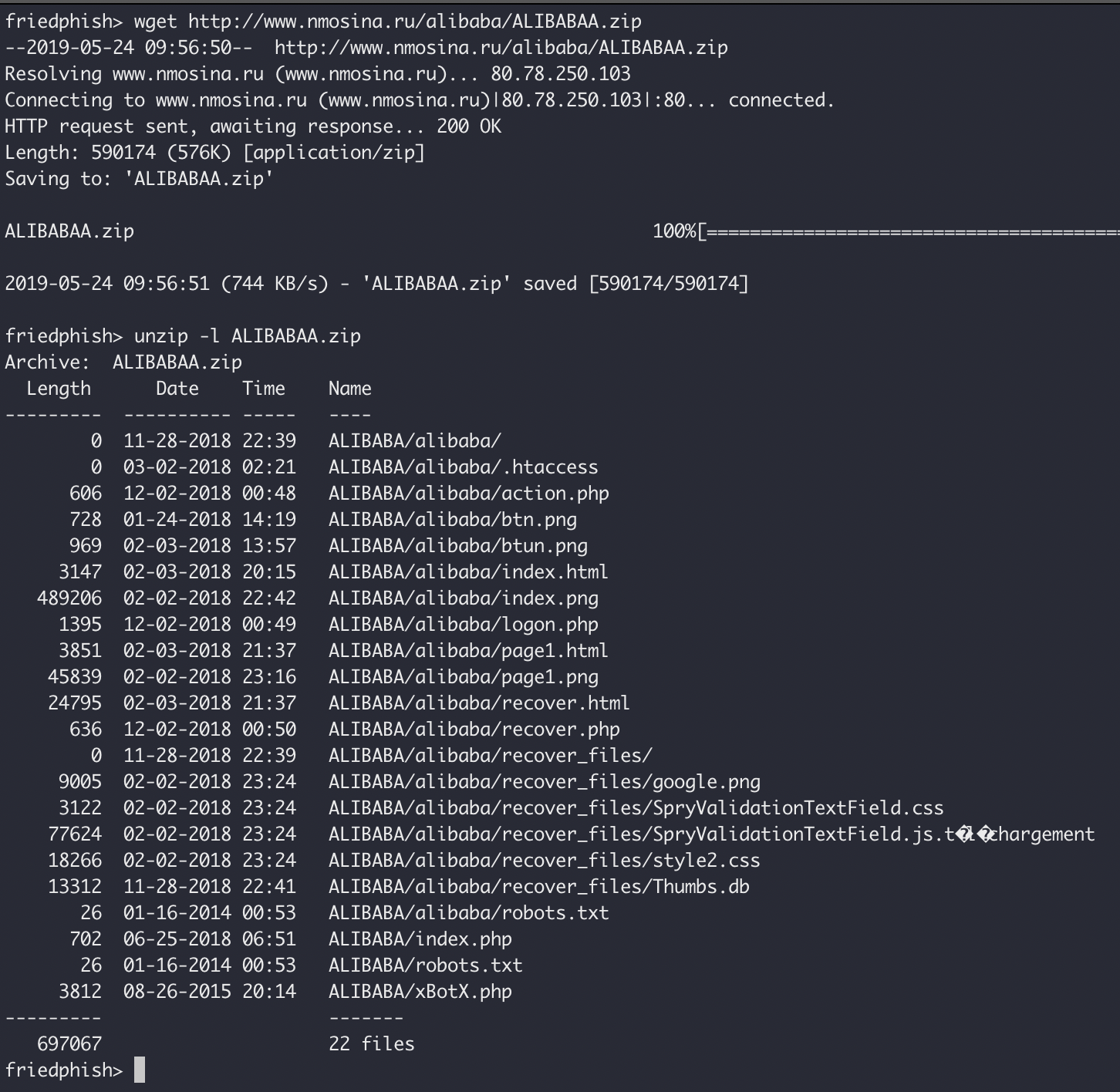 So as usual, we did the needful, and traversed up some directories to get a copy of the phishing kit, which was helpfully left behind in a zip file in an open directory for our downloading.