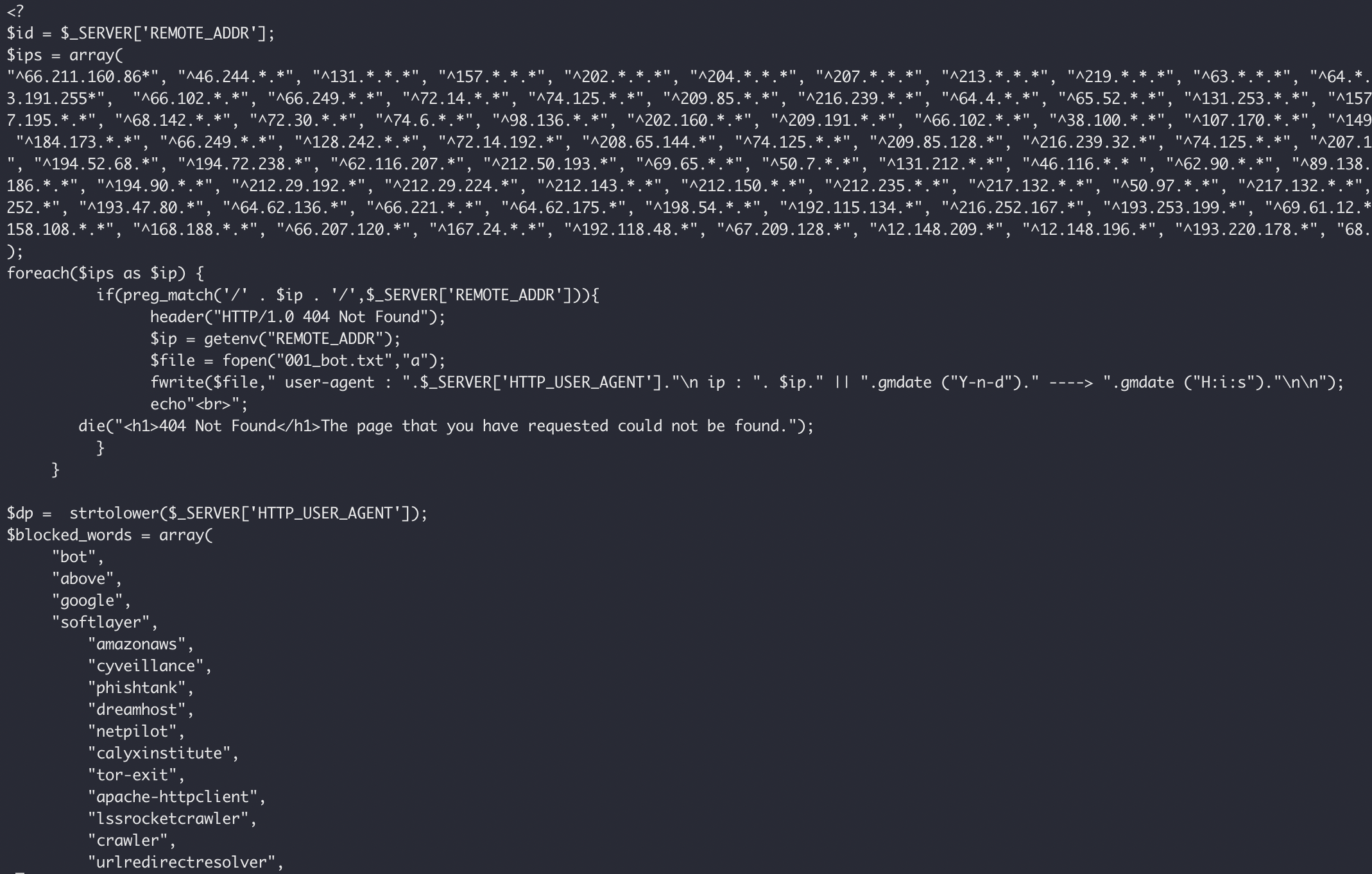 It also loads in a "xBotX.php" script, which is a really crap attempt at blocking crawlers, Tor exits, people like me, etc. from viewing the phishing kit and detecting it or whatever.