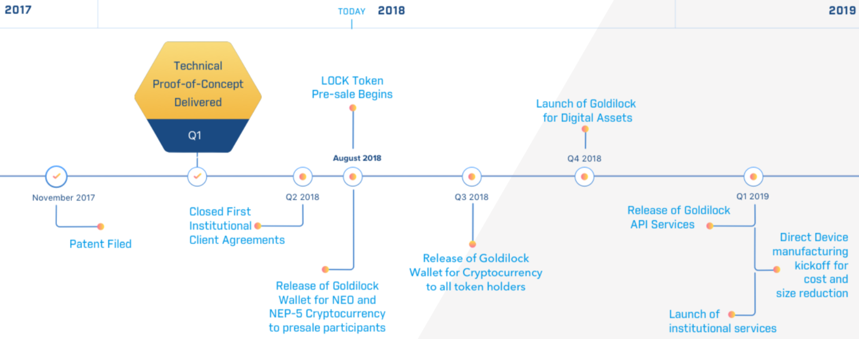 The token that people will need to use in order to have access to Goldilock’s services is called LOCK, this token “when coupled with Goldilock’s proprietary smart contract logic, will allow for the storage of private keys for cryptocurrencies and other digital assets, as well as provide an immutable auditing mechanism for each individual node using Default Byzantine Fault Tolerance”. Source