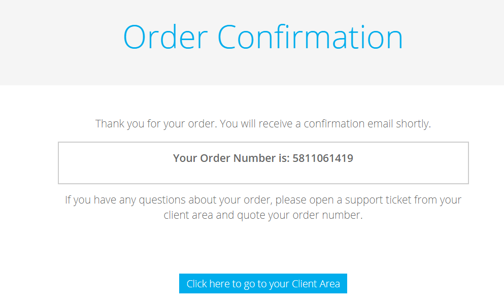 You’ll receive an email with the order confirmation and other details. Now click on "Click here to go to your Client Area" to head toward the client area.