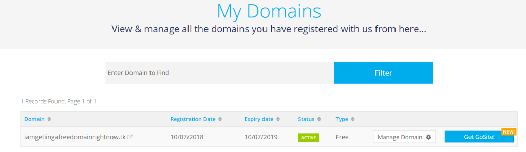Congratulation! Now you have your own domain and the best thing about this is that you didn’t pay anything at all!